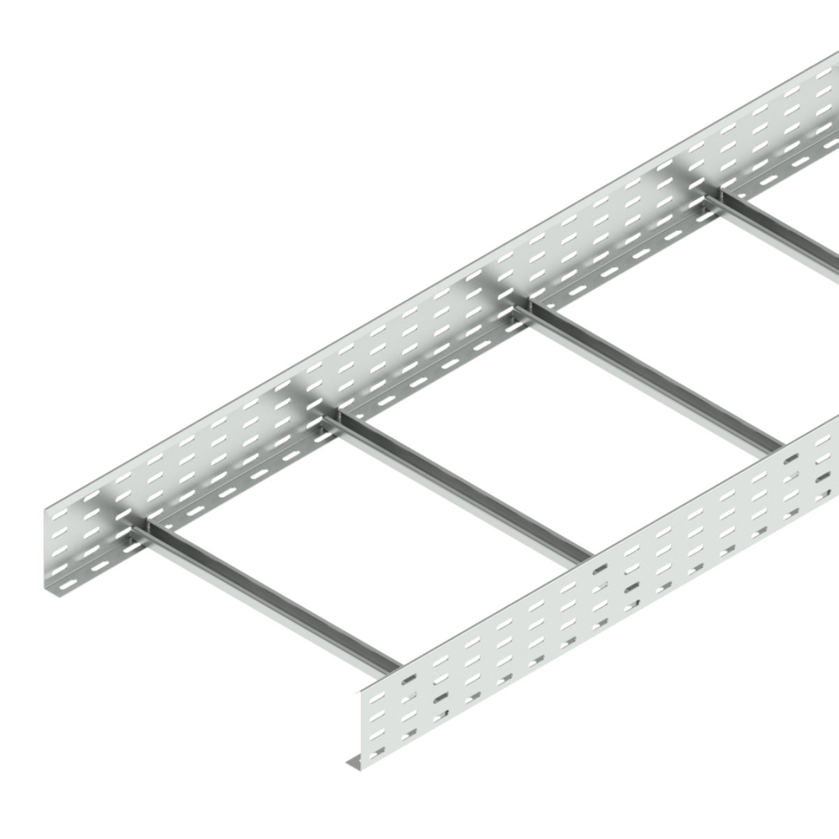 Die Verbindung der Leitern erfolgt mittels Verbinder S 110X200 und min. 8 Schrauben NSM 6X10. Die gelochten Seitenteile bilden ein L-Profil mit einer gebogenen Kante. Die gelochten Sprossen haben ein C-Profil und werden mit der offenen Seite nach oben befestigt. Der Sprossenabstand beträgt 300 mm.