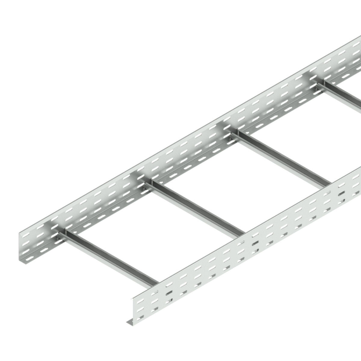 Die Verbindung der Leitern erfolgt mittels Verbinder S 85X200 und min. 6 Schrauben NSM 6X10. Die gelochten Seitenteile bilden ein L-Profil mit einer gebogenen Kante. Die gelochten Sprossen haben ein C-Profil und werden mit der offenen Seite nach oben befestigt. Der Sprossenabstand beträgt 300 mm.