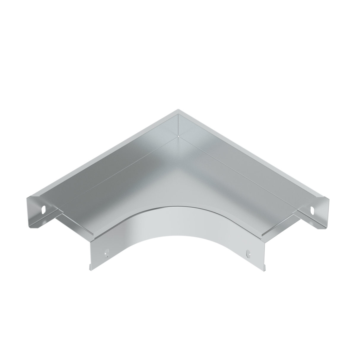 Mit dem Bogen wird in horizontaler Richtung ein 90 ° -Winkel erzeugt. Die Verbindung erfolgt durch direktes Einschieben der Kabelrinne in das Formstück und anschließende Sicherung mit den Schrauben NIXSM 6X10.